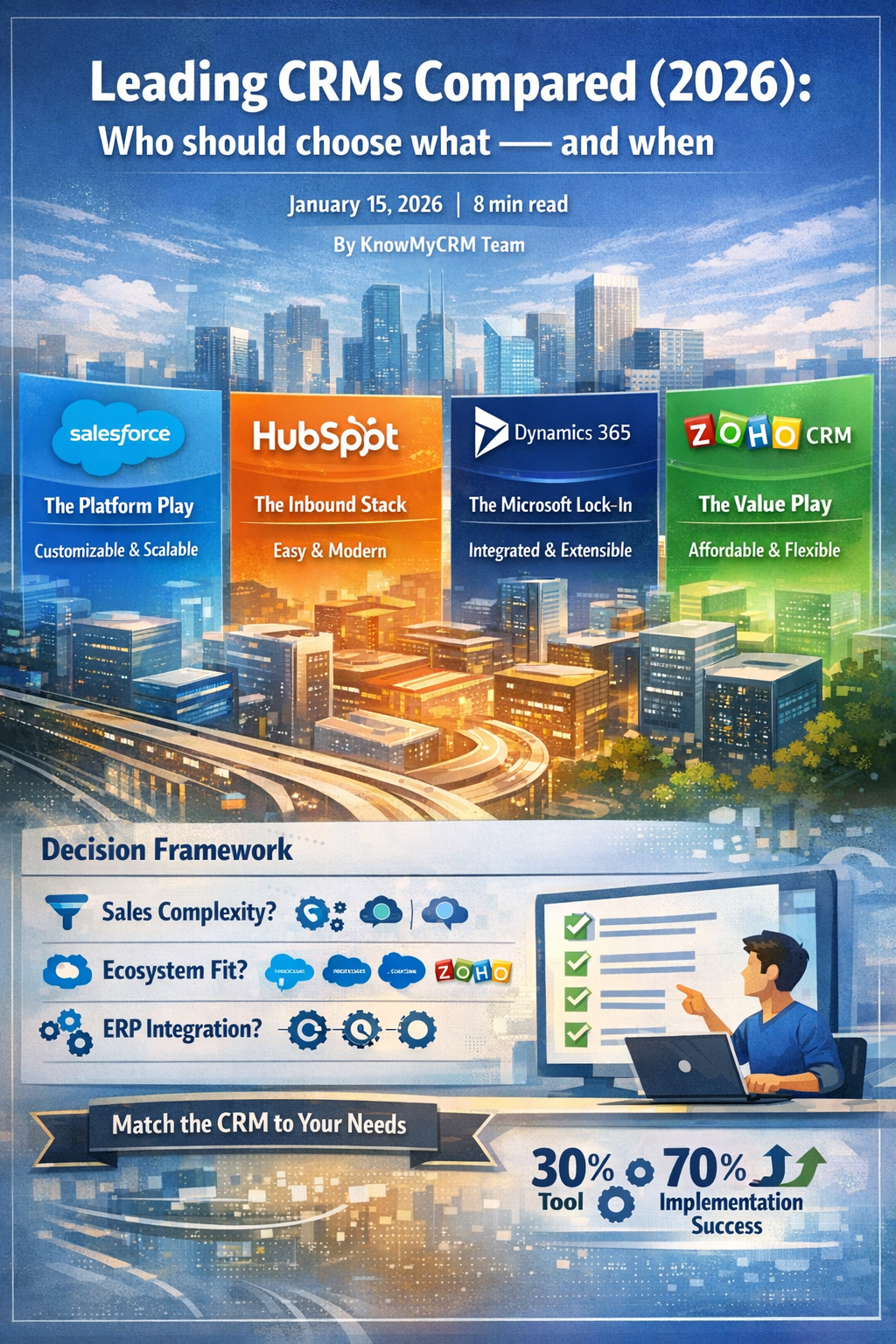 A practical guide to choosing between Salesforce, HubSpot, Dynamics 365, Zoho, Pipedrive, and others based on your workflows, scale, and ecosystem.
